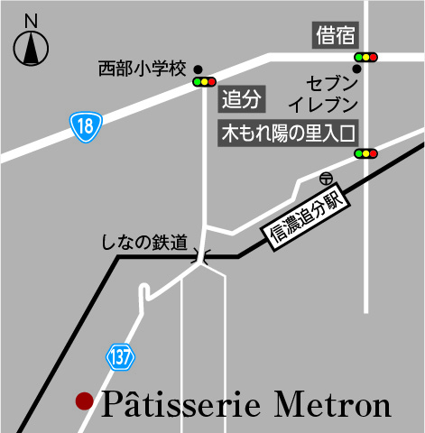 「信濃追分駅」から南に進んだ、県道137号線沿いの森の中にあるケーキ店「パティスリーメトロン」。大町市で歴史のある「Cake&Cafe立田屋」で現在もパティシエをしている原能成さんが、2025年4月にオープンさせたお店です。