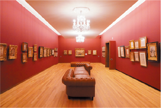 また、藤田嗣治の人生を辿るように展示された作品から癒しを最大限に感じられるように、各所にソファーを設置。館内のサロンでは定期的にコンサートなども開催されています。